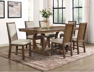 7pc Sarasota Formal Trestle Dining Table Group – Driftwood
