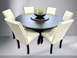 7pc NewForte Dining Table – Black – Beige Linen
