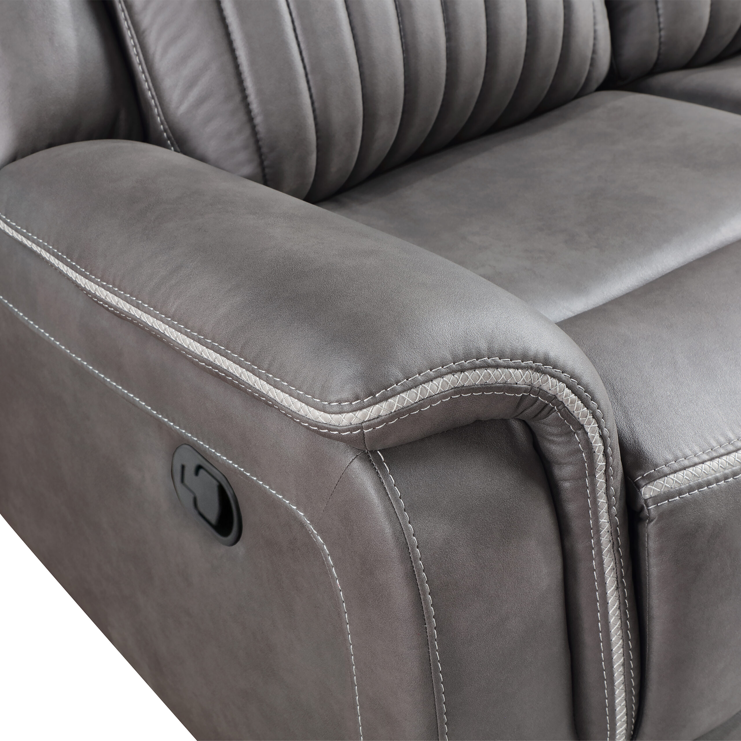 Upholstered in a rich gray 100% polyester fabric with baseball-white stitching contrast, this collection offers both durability and warm aesthetics in its soft touch fabric. The coil cushion provides exceptional support and long-lasting comfort.